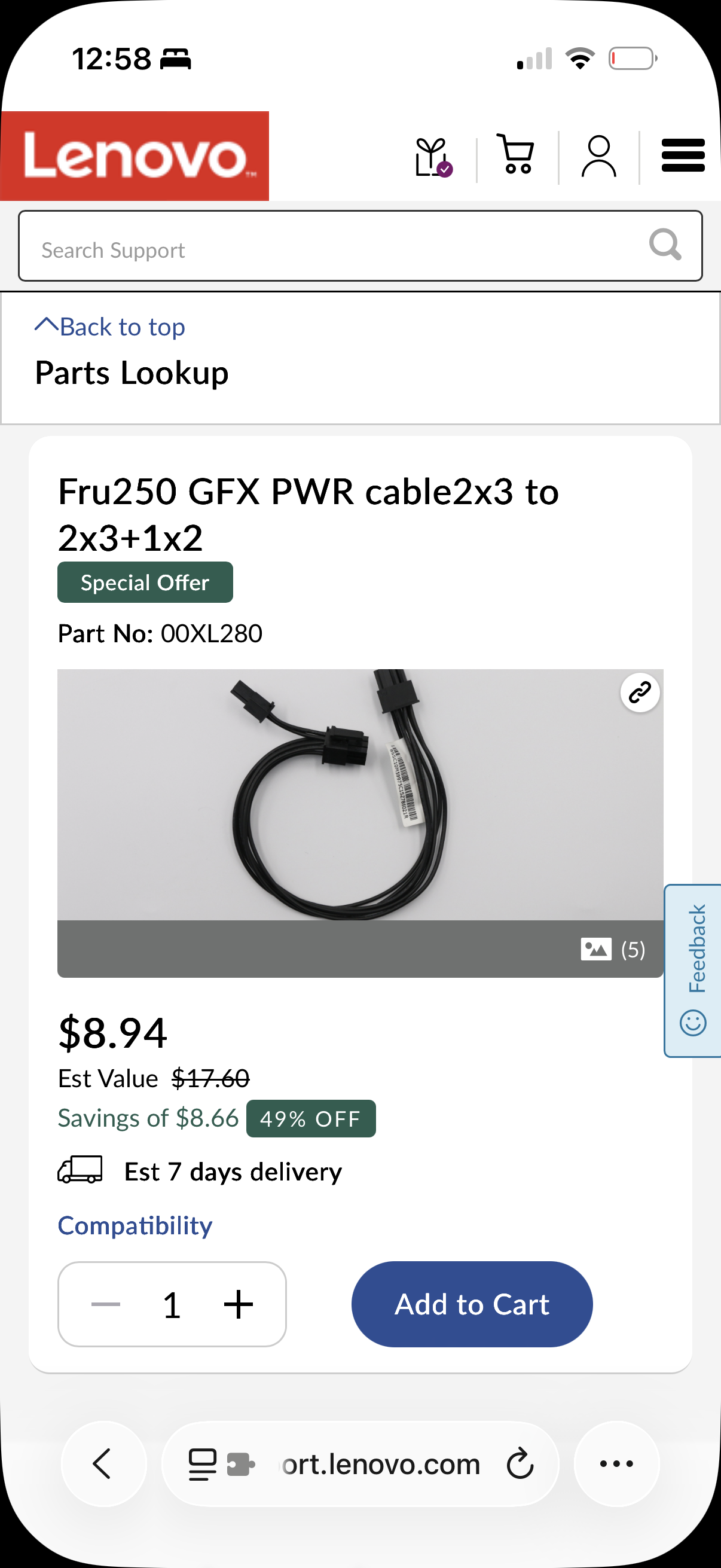 Really pleasant experience with Lenovo support, because the part was 50% off and free shipping (2 days in my case).