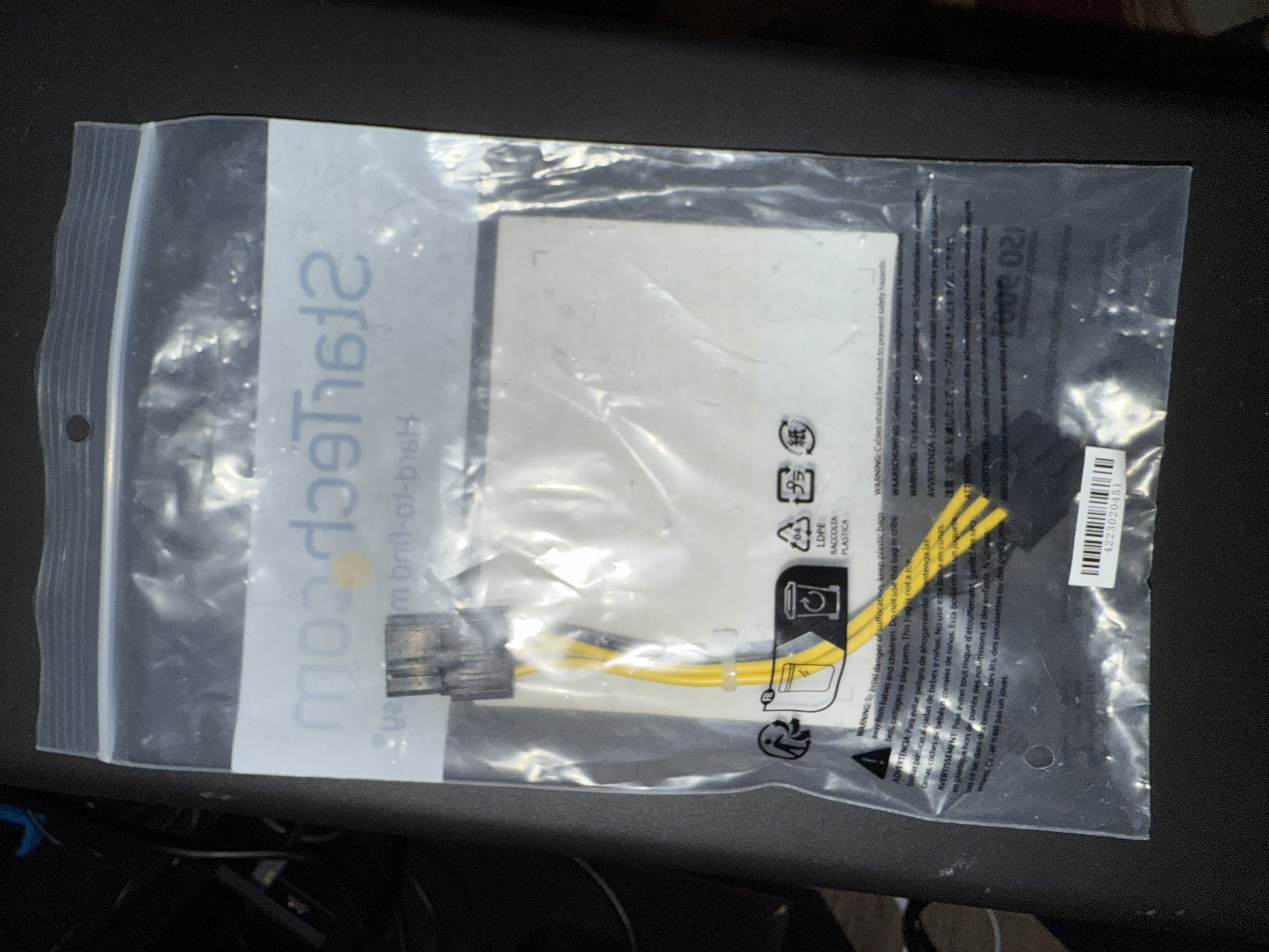 I bought this F6pin-M8pin adapter on Amazon before I took the computer case apart enough to see the original cable (pictured above). This one was a 00XL159